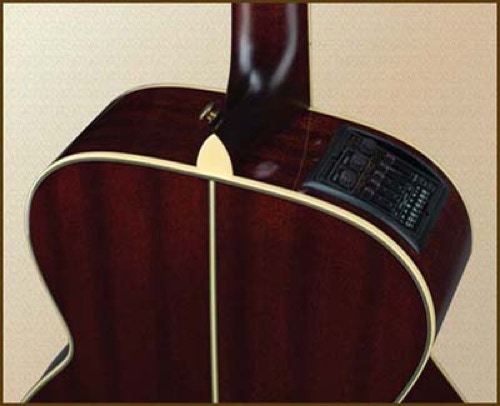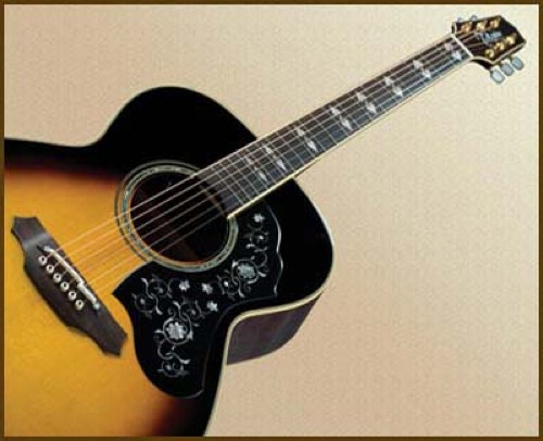 Shown below is the LTD 2009, a solid Spruce top NEX body in Sunburst with solid Mahogany back/sides all in a gloss finish. A laser etched shell pick guard, shell tail trim and shell fretboard round out the look.