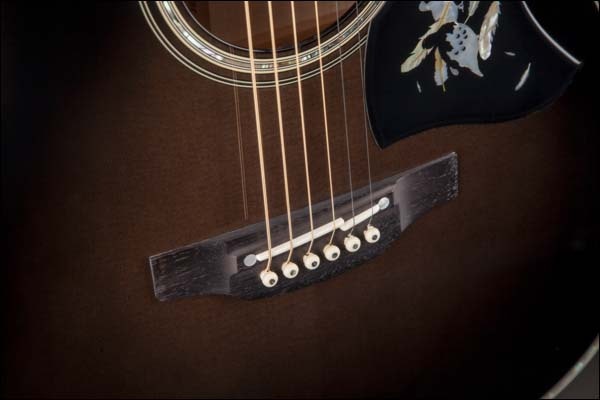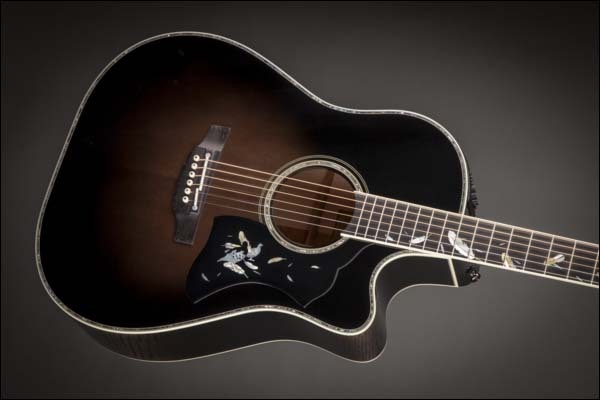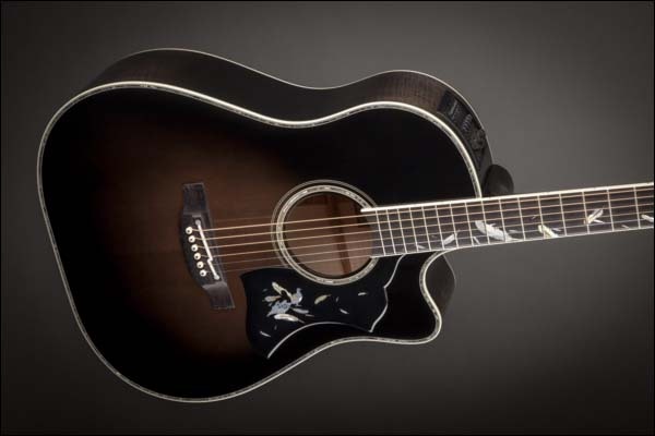 Shown below is the LTD 2014, a 12-fret Dreadnaught in vintage sunburst finish. Features include a Sitka Spruce top, flamed maple back/sides and inlays honoring the Grouse feathers.
